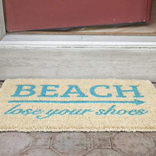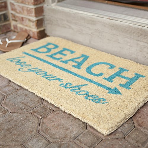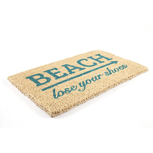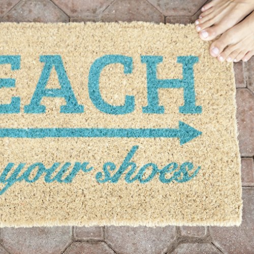 -. Feature : Dimensions: 18 x 30 in. / Blue beach text on tan background / Hand-made from premium all-natural coconut fiber / .75-inches thick / Hand-stenciled with permanent fade-resistant dyes