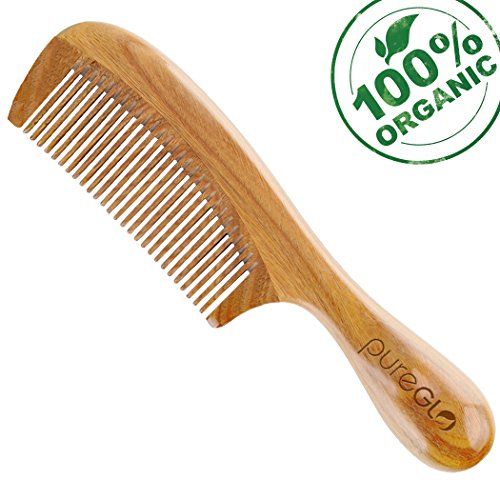 All Natural Hair Comb - pureGLO No Static Detangling Wooden Combs - Handmade Natural Fine Tooth Comb