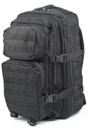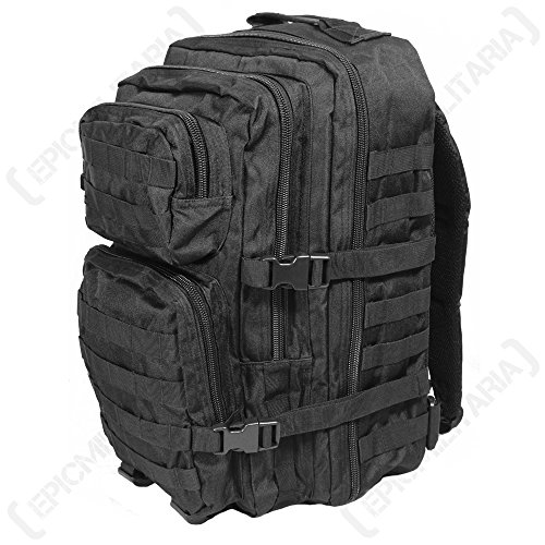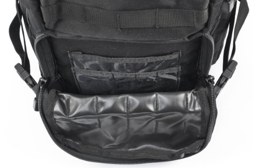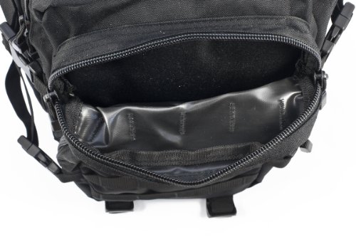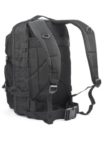 Studio : Mil-Tec Publisher : Mil-Tec Binding : Misc. Product Description This heavy duty and water-resistant 50 liters assault pack features 2 large compartments with various zip and mesh inner pockets and 2 small front pockets (one with organizer), as well as a built-in Velcro pocket for a hydro pack. All compartments are closed with sturdy 2-way zippers. Ergonomically designed shoulder straps are padded, about 5cm wide and adjustable in length. Moreover the pack goes with a padded back and an adjustable waist strap opened with a clip.