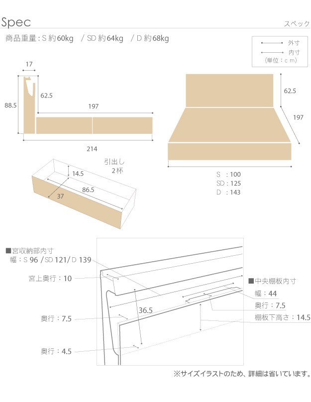 外寸:幅125x奥行214x高さ88.5cm/約64kg