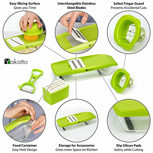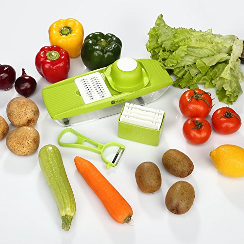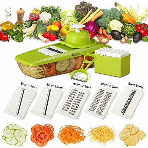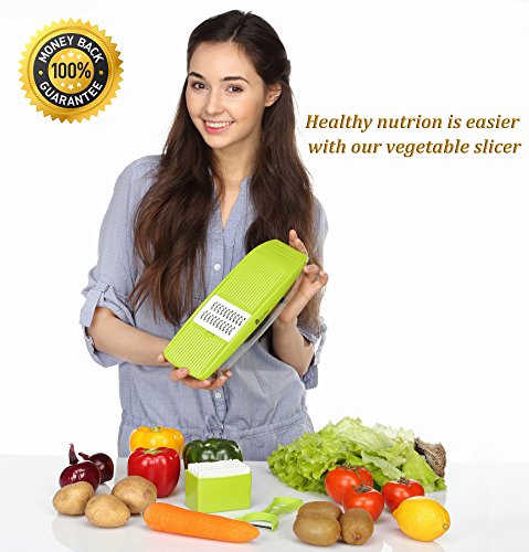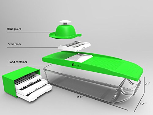 ✅ EASY TO USE: Whether you want to grate cheese, slice potatoes, cucumber, carrot, ginger, garlic, fruit or even julienne zucchinis and carrots, this efficient vegetable mandolin slicer will do it all!