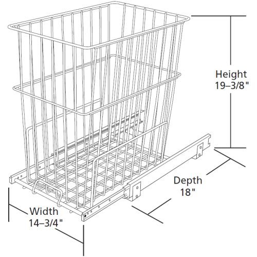 -. Feature : Dimensions: 18L x 14.75W x 19.375H inches / Made of heavy-gauge wire in chrome / Easy removal for transferring clothes / Features full-extension soft-closing slides / Fully assembled