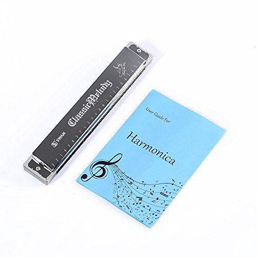 Boseno 24 Holes Double Tremolo Harmonica, Key of C Prime (Black)
