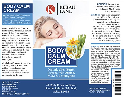 Relax tense muscles and relieve aching neuropathy, neuritis fibromyalgia with our premium pain relief skin cream. Pain happens to us all, especially as we get older. The longer we live the more we are likely to succumb to sports injuries like Tennis Elbow, or suffer from joint point like neuropathy. Whatever the reason for your muscle and joint pain, we at Kerah Lane want to do our part to start making you feel better, faster. That is why we created this Kerah Lane Body Calm - Pain Relief Cream with Shea Butter. Acting both as a pain relief and an anti-inflammatory cream, our organic blend of Shea butter, Arnica, MSM and Lemongrass helps to reduce your pain quickly so you can get back to enjoying your life. Our smooth, non-greasy, non-irritating formula is perfect for getting you back on your feet and working with your hands once again. Get your Kerah Lane Pain Relief Cream today and see for yourself. Key benefits of Kerah Lane Body Calm Cream: Pure and Organic Fast Absorbing Pain Relief Non-Greasy, Non Irritating Anti-Inflammatory Neuropathy Pain Relief Natural Ingredients Include: Shea Butter Arnica Cream MSM Lemongrass Find real Neuropathy Relief by clicking Add to Cart now. 0 |