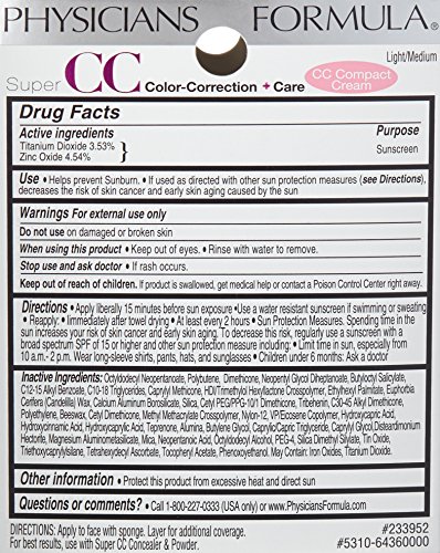 Physicians Formula Super CC Color-Correction and Care CC Compact Cream SPF 30, Light/Medium, 0.28 Ounce