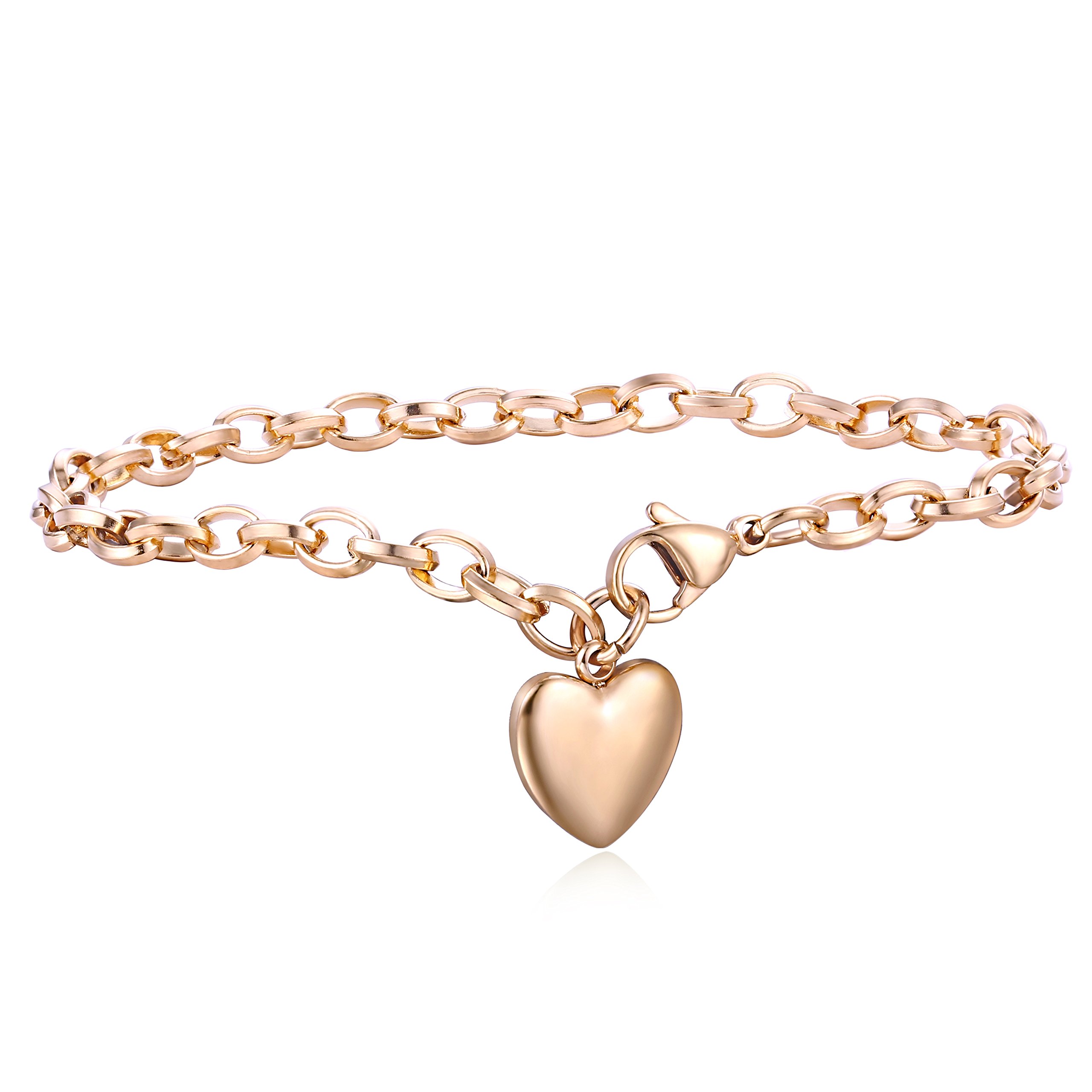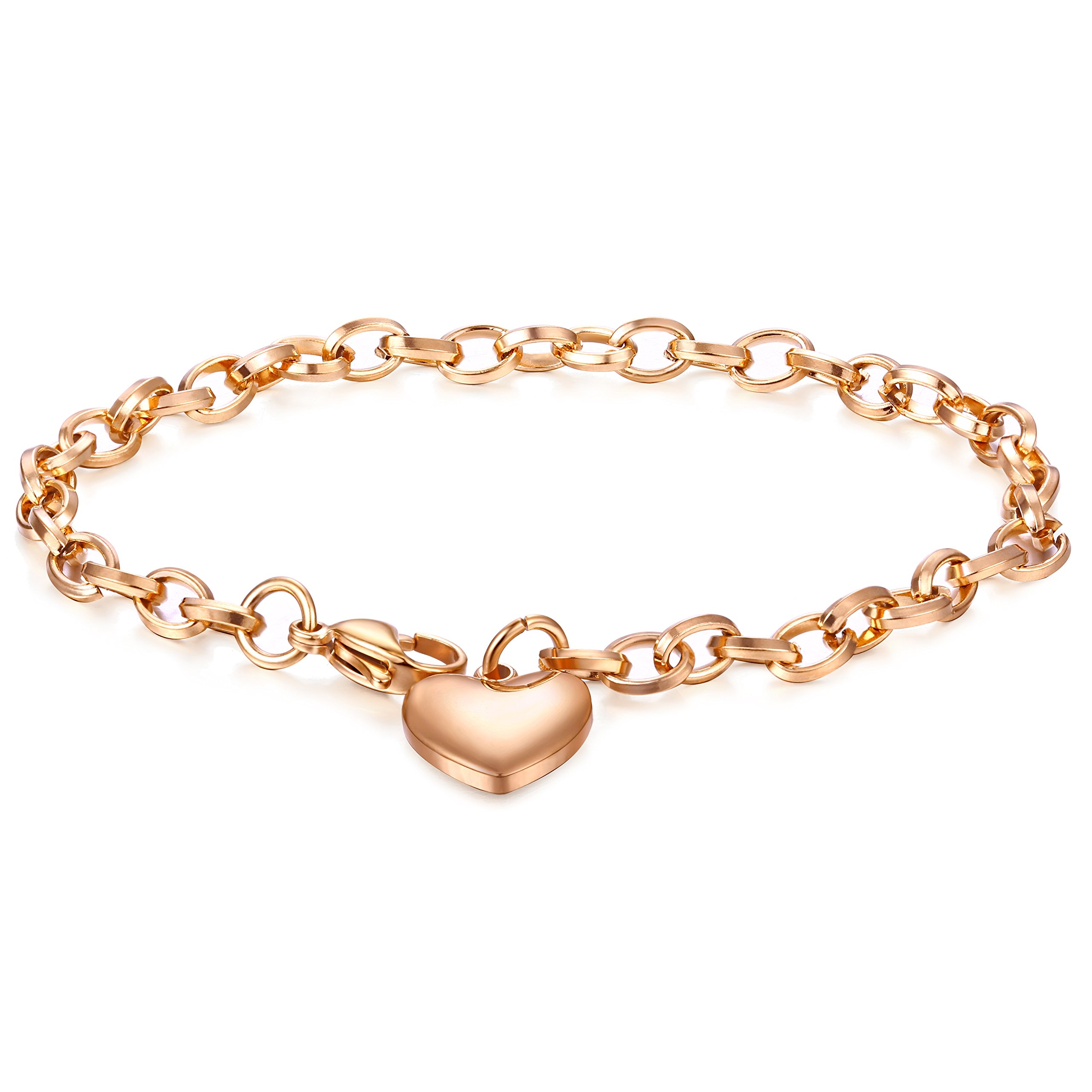 Because it is an entire pink gold color ladies chain bracelet, it is cute with the simplicity of not choosing fashion.