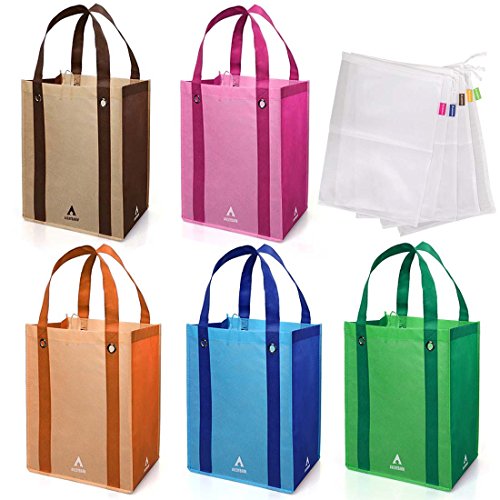 Avery Barn 10pc 2 Tone Reusable Reinforced Grocery Shopping & Produce Bag Set