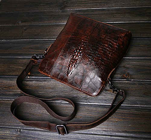 Itslife Men's Cowhide Leather Alligator Crocodile Pattern Shoulder Messenger Bag for iPad