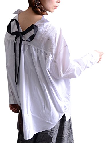 -. Title : (Goldjapan)ゴールドジャパン 大きいサイズ レディース おおきいサイズ シャツ ブラウス リボン 長袖シャツ 長袖 無地 シンプル スリット入り