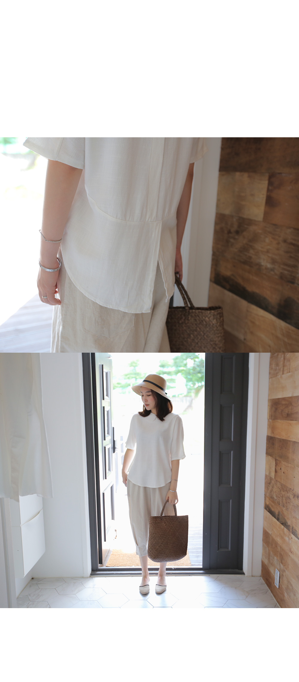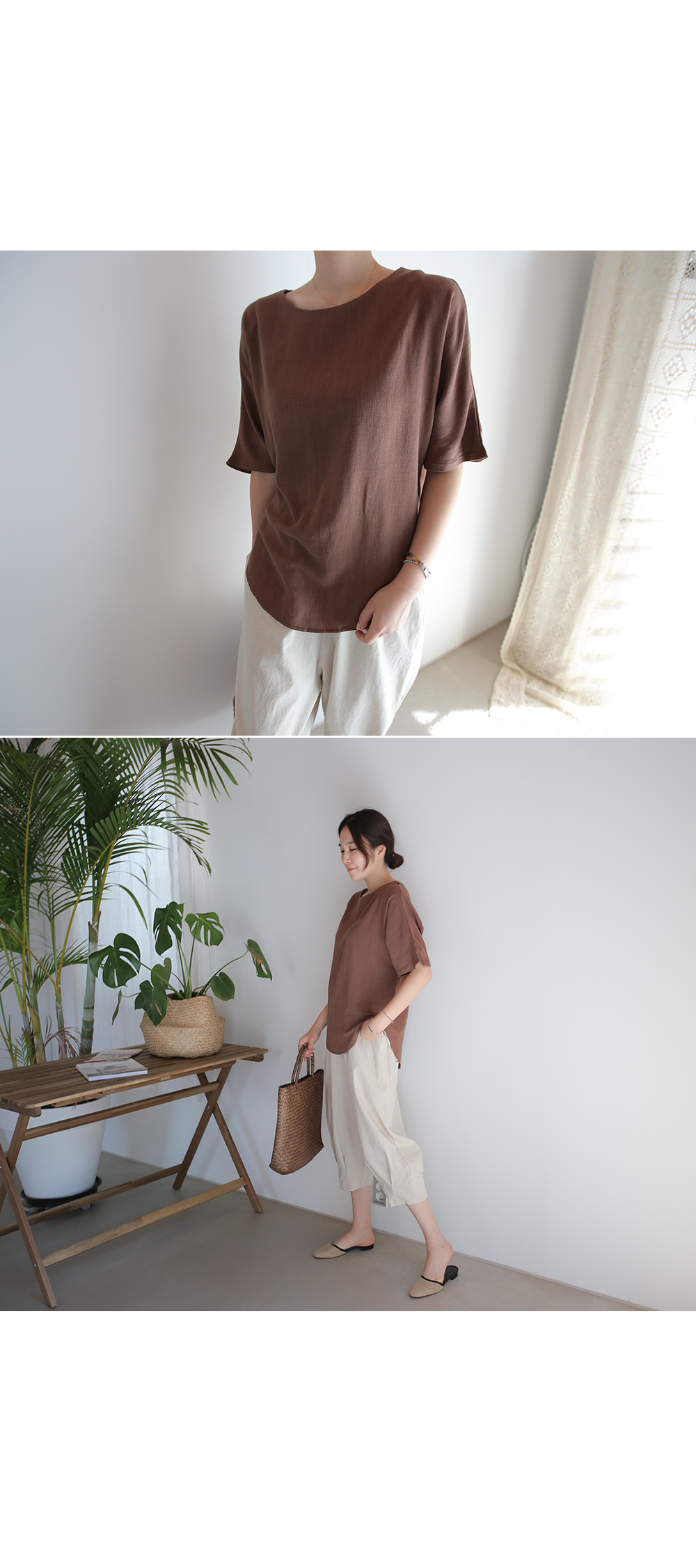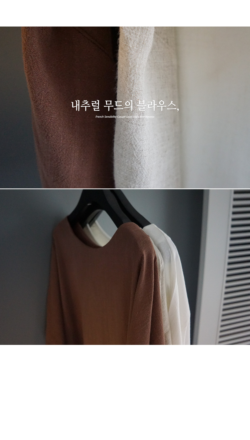 힘있는 도톰한 린넨 소재의 라운드넥 블라우스 소개해요
