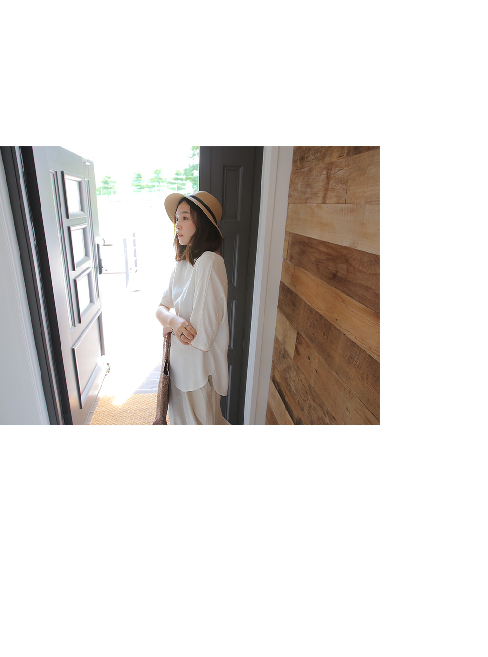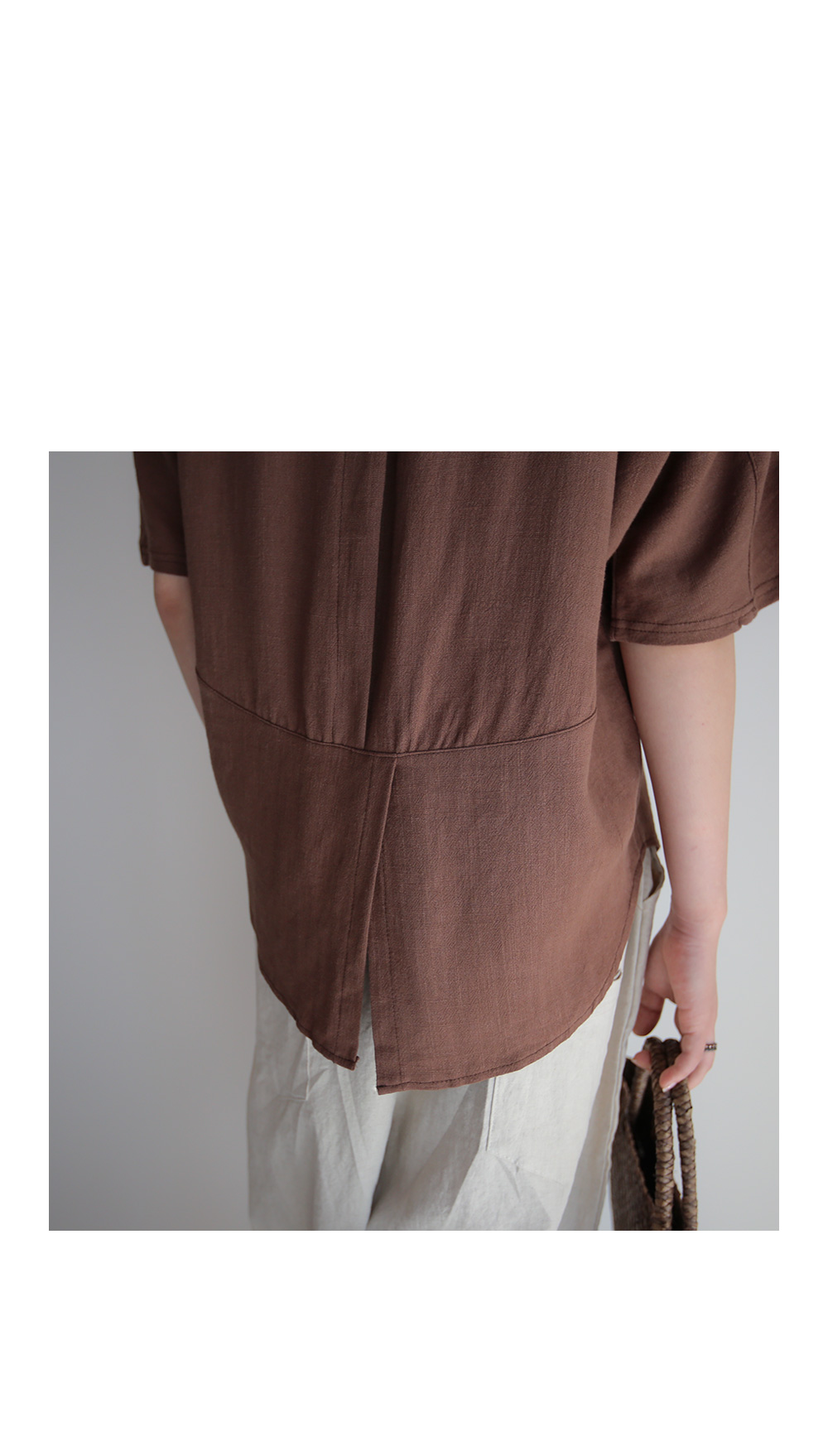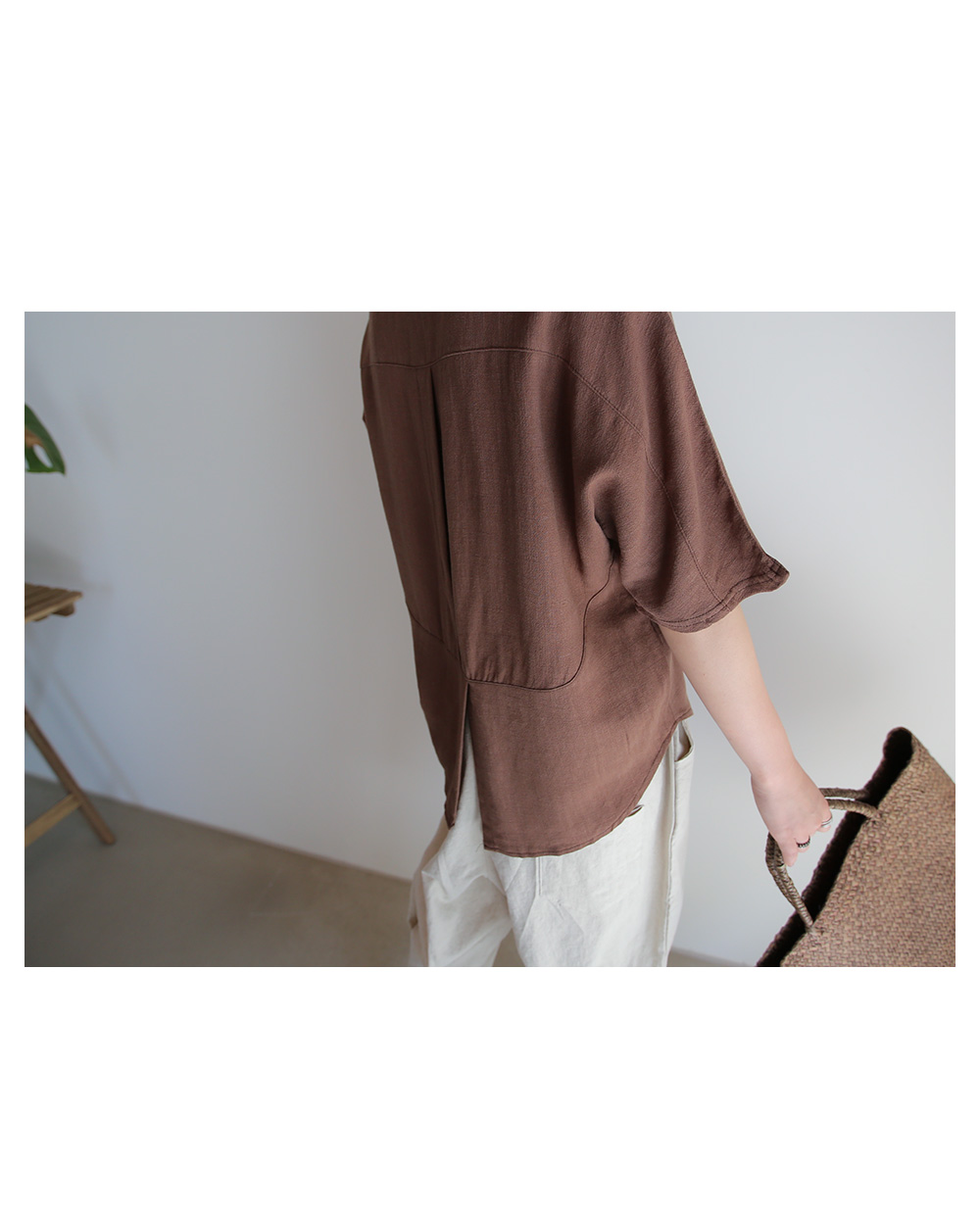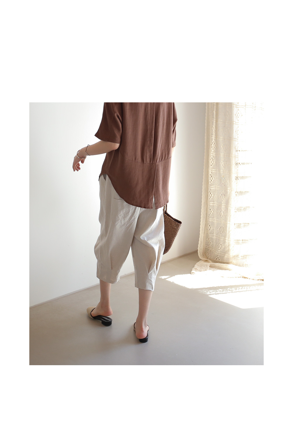 힘있는 도톰한 린넨 소재의 라운드넥 블라우스 소개해요