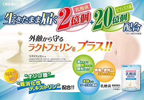 -. Binding : Health and Beauty -. Brand : ORIHIRO -. EAN : 4571157256481 -. Feature : Live acid bacteria reach the gut! Lactic .200 million, bifidobacteria 2 billion blending (in 1 package) / Lactoferrin 10mg formulations (more in 1 package) / To health management everyday! Melt easy to drink yogurt flavored granules .To those who want establish a tone of stomach and in the cold season . -. IsAdultProduct : 0 -. Label : ORIHIRO -. LegalDisclaimer : Brand new product from ORIHIRO. Japan Best Seller product, try it!!