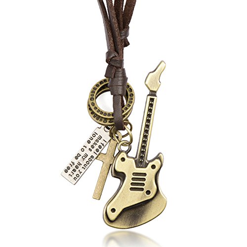 -. Title : Victoria Echo Lucky Bronze Cross Rock Guitar Pendant Necklace,Letter Leather Necklace Adjusatble