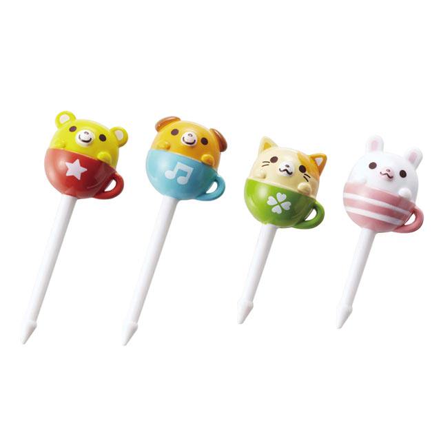 日本进口 新款 茶杯里的动物 儿童便当装饰签 迷你可爱水果叉