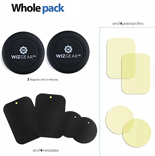 WizGear Universal Flat Stick On (2 Pack) Dashboard Magnetic Car Mount Holder for Cell Phones and Mini Tablets with Fast Swift-Snap Technology - Extra Slim