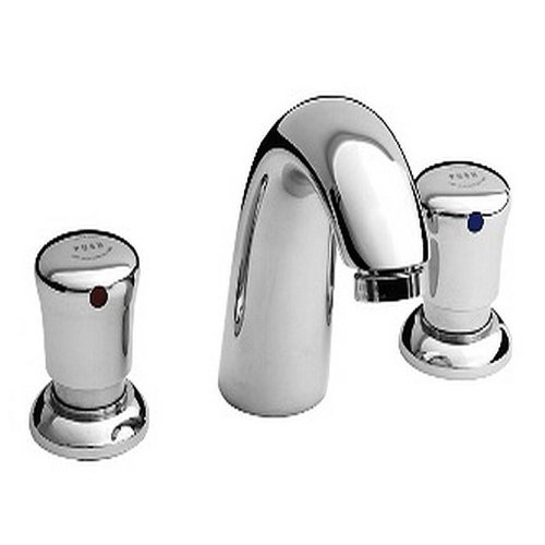 Double Handle Widespread Metering Lavatory Faucet Style and substance strike a perfect balance in the bathroom faucet collections from American Standard. Our faucets are engineered to look beautiful and function flawlessly. Worry-free and built to last. Vandal resistant cast brass construction and aerator. Automatic shut-off. Adjustable flow cycle. Meets ADA Standards. Order grid drain separately. Hot/Cold Button Indicators. Replaceable Valve Cartridge: Facilitates simple replacement. Pressure Compensating Aerator: Provides a constant water flow of 1.5 gpm throughout the pressure range.