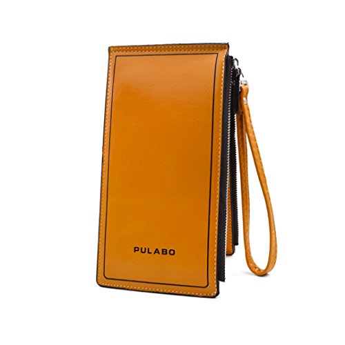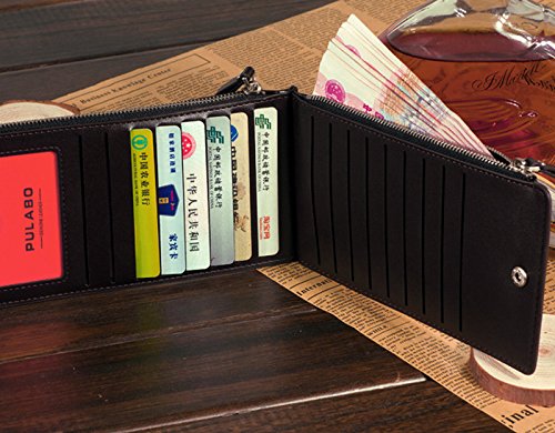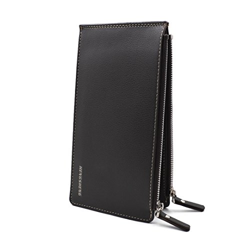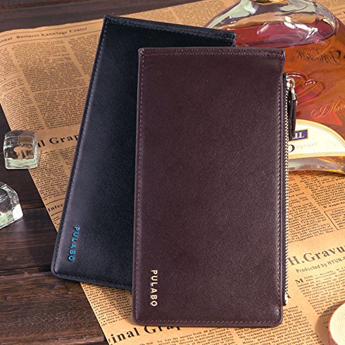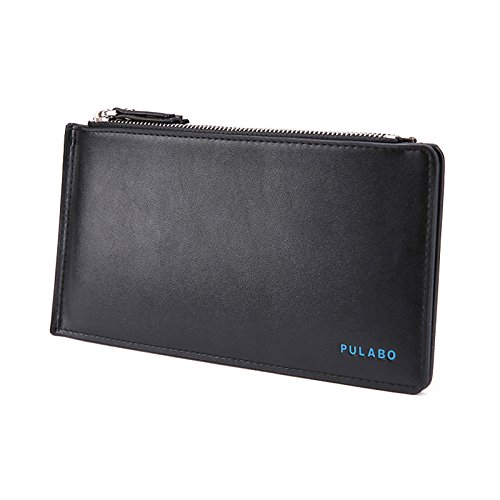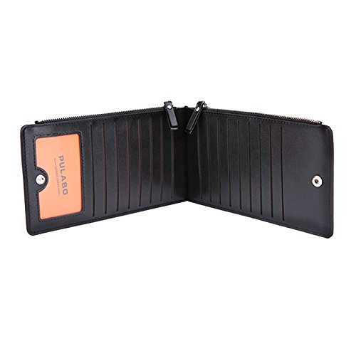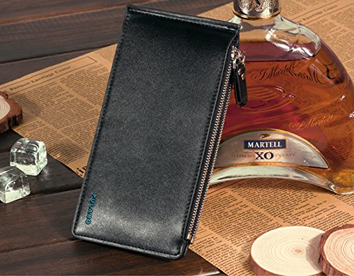 AiSi® Women's Leather Wallet Money Clip Front Pocket Wallet 18 Cards Slim Billfold(Black)