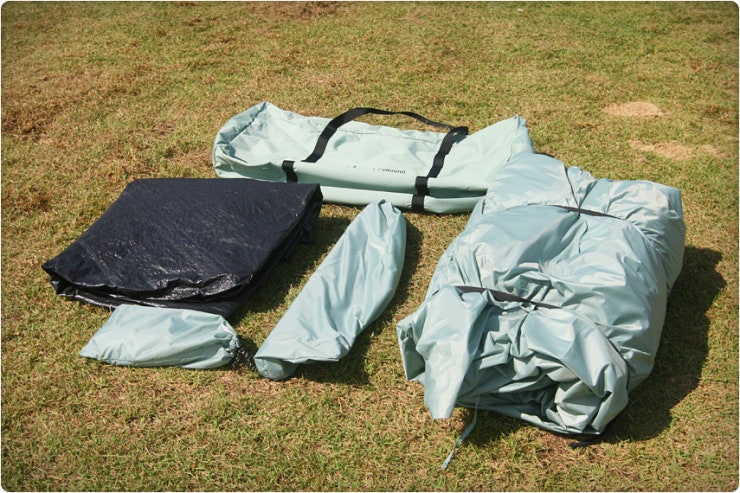 면텐트의 특성상 많이 무거울 수 있으니 부속품 (폴대, 방수포, 팩, 스트링)등은 따로 나누어 보관 이동하시면 더욱 좋습니다.