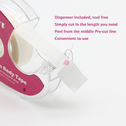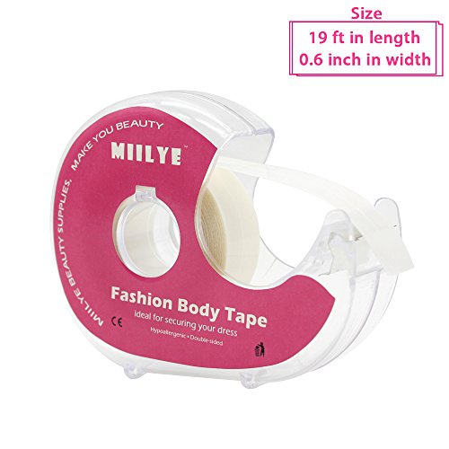 MIILYE Fashion Body Tape, Double-Sided Skin and Clothes Friendly Adhesive Tape to Keep Clothing in Place, A Roll of 0.6 in x 19.5 ft with A Dispenser