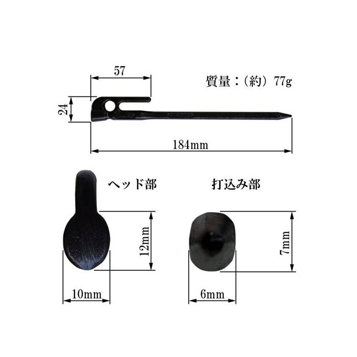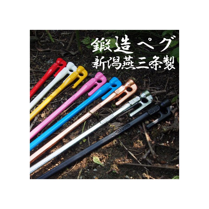 컬러 분체 도장이 각2개(레드,옐로우,화이트,블루,핑크)가 들어 가 있는 한정 세트입니다. 소재가 둥근 강재를 약1100℃가 되까지 새빨갛게 뜨거워지고, 약1톤 이라고 하는 강력한 힘으로 단번에 단면을 타원형으로 으깬 단조 페그(말뚝).가열한 강재에 강력한 압력을 더하는 것에 따라,우수한 강도를 가지는 페그(말뚝)가 완성합니다.