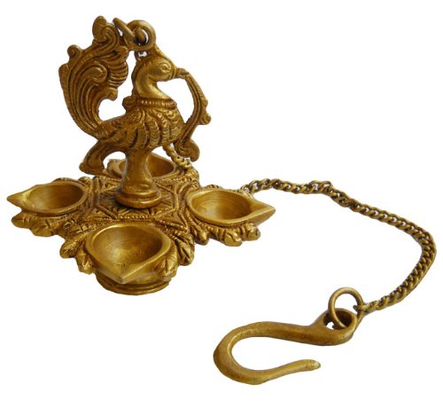 Zap Impex Traditional Peacock 4 in 1 Brass Hanging Diya with 15 Inch Chain | Deepak | Oil Lamp | Home Décor | Spritiual Gift