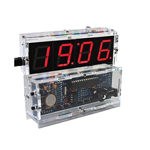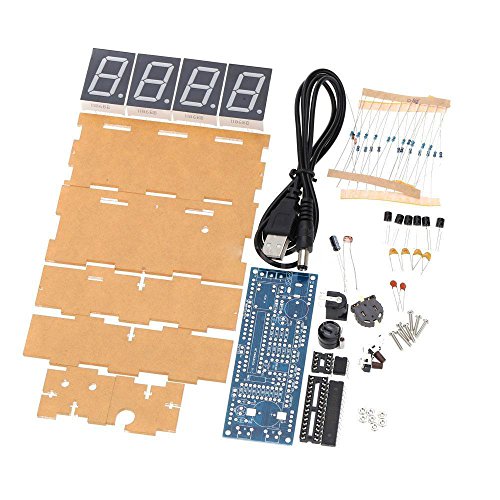 Feature : Great Ideal digital clock DIY kit for electronics enthusiasts, easy to install. / Come with transparent case, components can be well protected and the clock looks stylish. / Looking good Light control, the clock will automatically be brighter during the day than during the night. / Large 4-digit LED display, can show you time and temperature. Useful alarm function and hourly chime function. / Product include a USB cable, it is convenient to be charged.