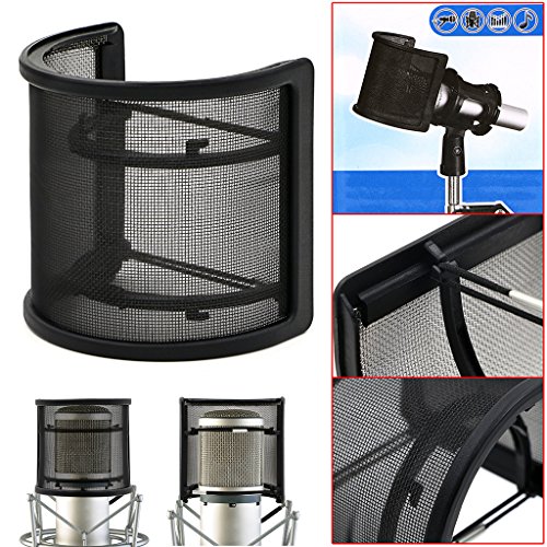 Title : BTSKY® Double Layer Recording Studio Microphone Mic Windscreen Pop Filter Mic Shield Stand Mount, Black