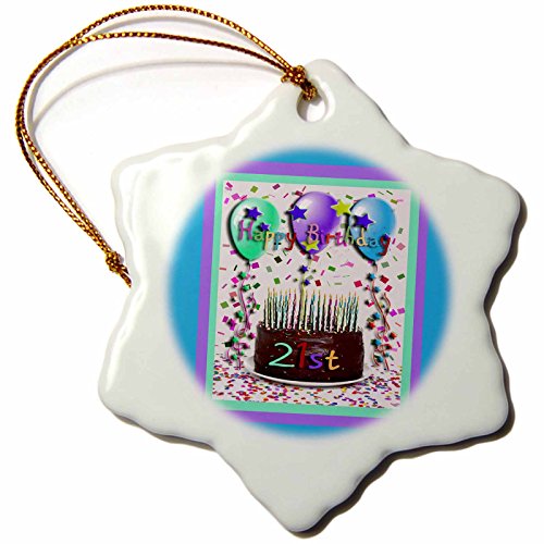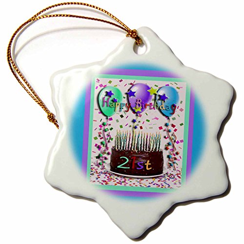 Beverly Turner Photography Happy Birthday Chocolate Cake 21st Snowflake Porcelain Ornament, 3-Inch