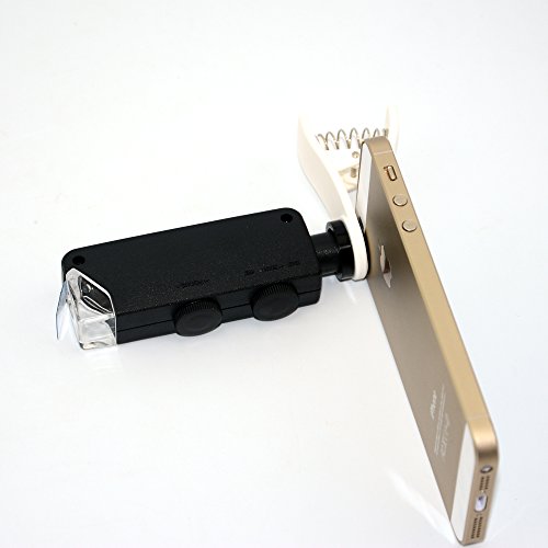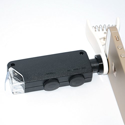 -. Feature : Zoom magnification 60x-100x / Transforming your phone to a mobile microscope by attaching this item. Easy to install. / The ABS- body with focusing is very solid / Illuminated by LED which provides enough light in any dim conditions / Great for the observation of stones, coins, stamps, etc.