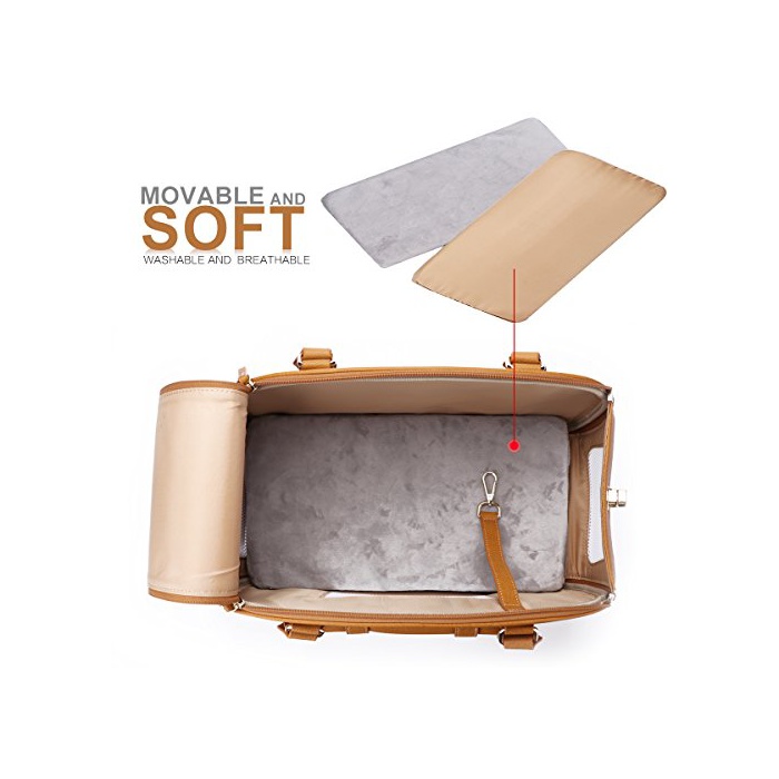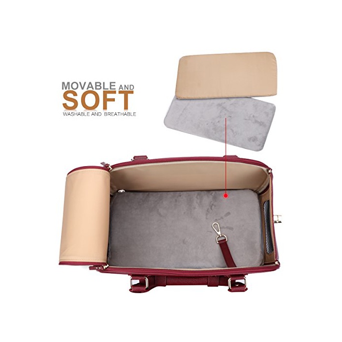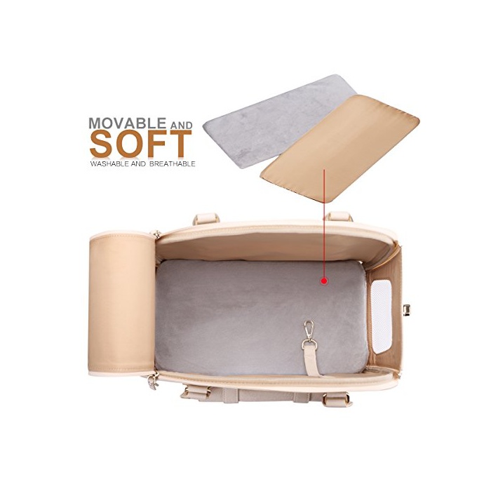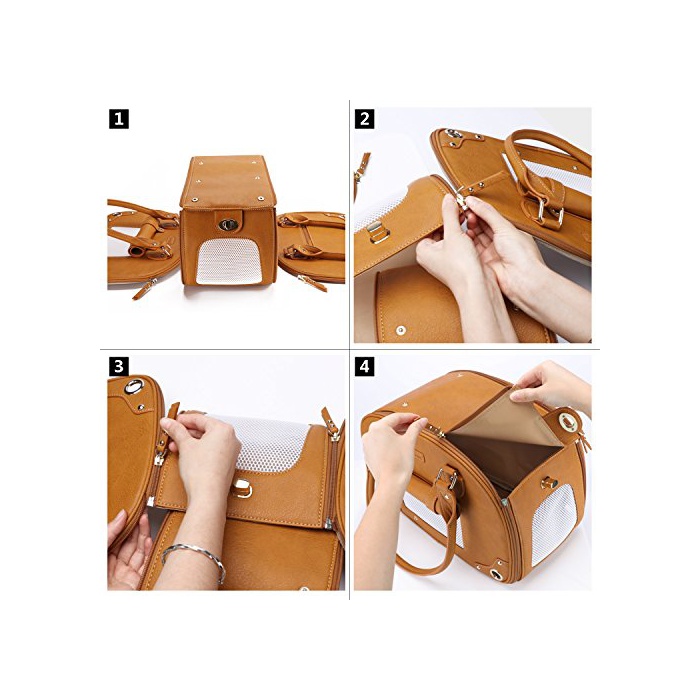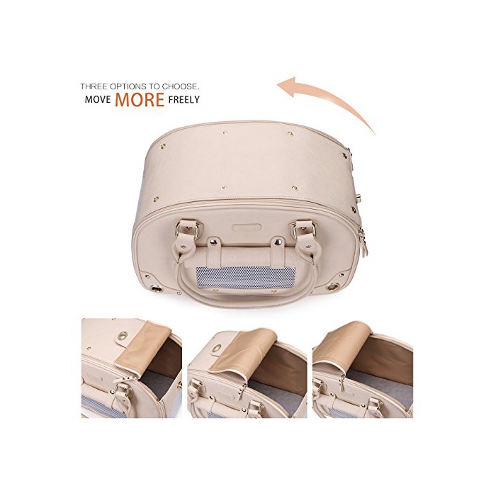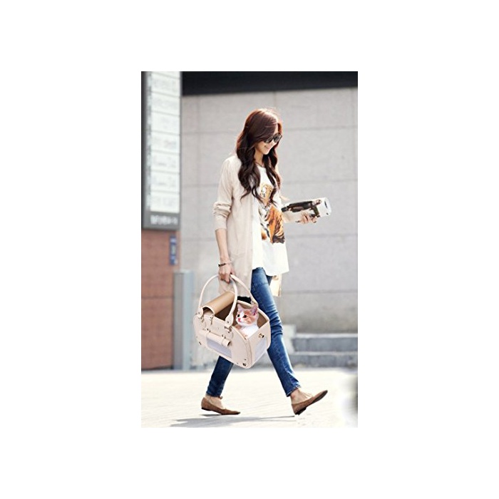 애완동물용 캐리 백 Petshome 접이식식 방수성 고급PU레더 애완동물 백 소형견용,고양이,소동물 여행 외출 산책용 핸드백 손 백 베이지