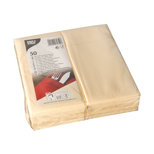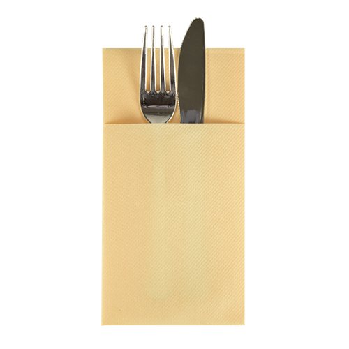 Disposable Paper Cutlery Pocket Napkin Sleeve, Feels like Linen, looks like Cloth, 1/6 fold 40 cm x 30 cm, 50 Pack (Cream)