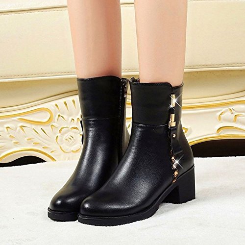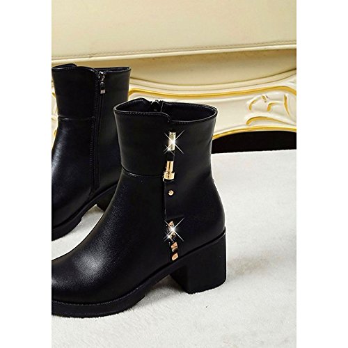 Studio : ZHZNVX Publisher : ZHZNVX Product Description Style:Combat Boots, Occasion:Casual, Gender:Women's, Category:Boots, Upper Materials:PU, Outsole Materials:TR, Lining Materials:PU, Heel Height:2-4 in (5.08-10.16 cm), Embellishment:Rhinestone, Toe Shape:Round Toe, Season:Winter, Heel Type:Chunky Heel, Boot Shaft:Mid-Calf Boots, 0
