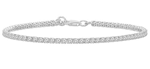 This charming bracelet showcases dazzling round 2mm cubic zirconias. The bright beauty is 7 inches (adjustable to 8'') long and secures with a claw clasp. Prong set CZs add extra glimmer to this stylish bracelet.