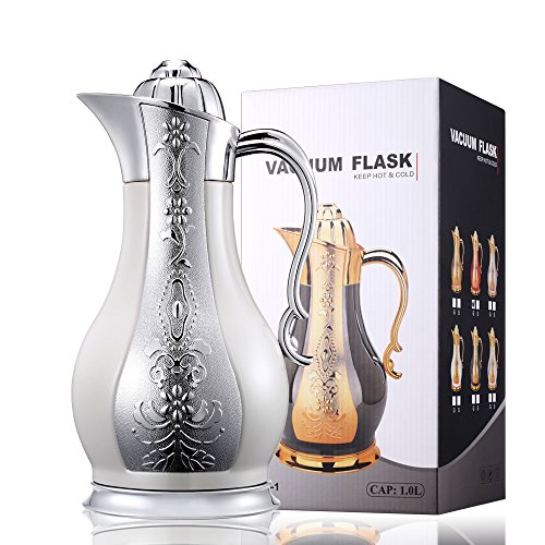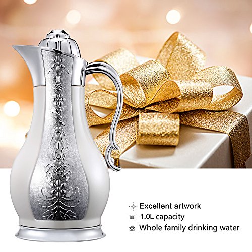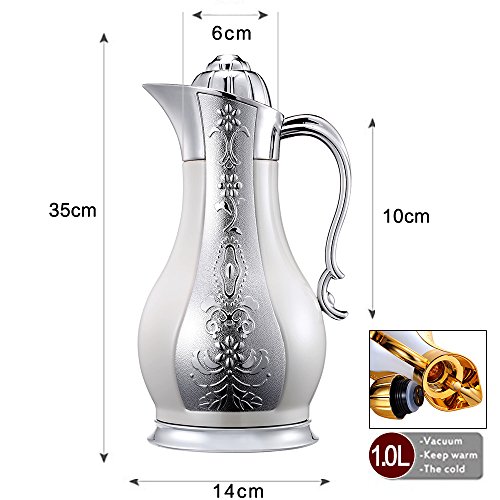 Quality Thermal Carafe by Eglaf/ Gorgeous Thermal Pitcher / Vacuum Insulated Double Wall Inner / Carafe for Tea and Coffee - Beverage Dispenser - Keep Hot or Cold / 1L (Silver White)