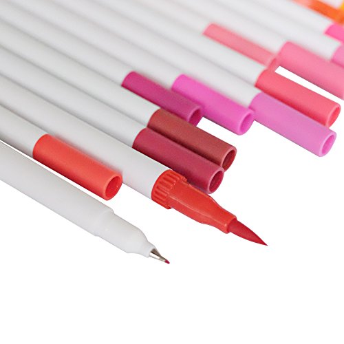 - ★DUAL TIP DESIGN:0.4 mm fine tip for detailed outlining and fine lines, 1-2 mm nylon fiber brush tip for shading and coloring. Artists love to use GC Quill dual tipped marker pen because of its accurate line control, superior color blending and the flexibility of a smooth pen stroke. Clean thick or thin lines can be achieved with ease.
