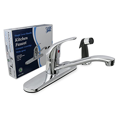 EverFlow Kitchen Faucet Single Lever Free Handle Durable Solid Brass Body 17382, with Spray and Ceramic Cartridge Chrome Plated Finish Lead-Free construction