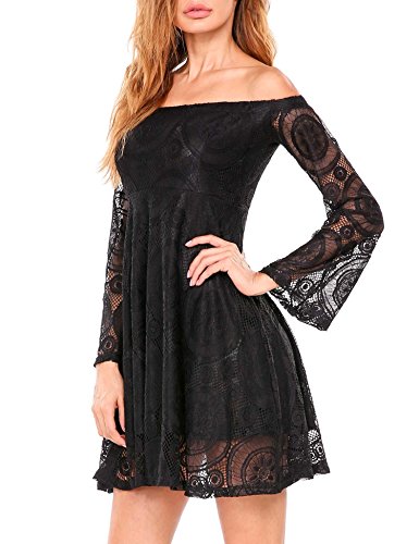 SE MIU Long Sleeve Off the Shoulder Lace A-Line Short Dress