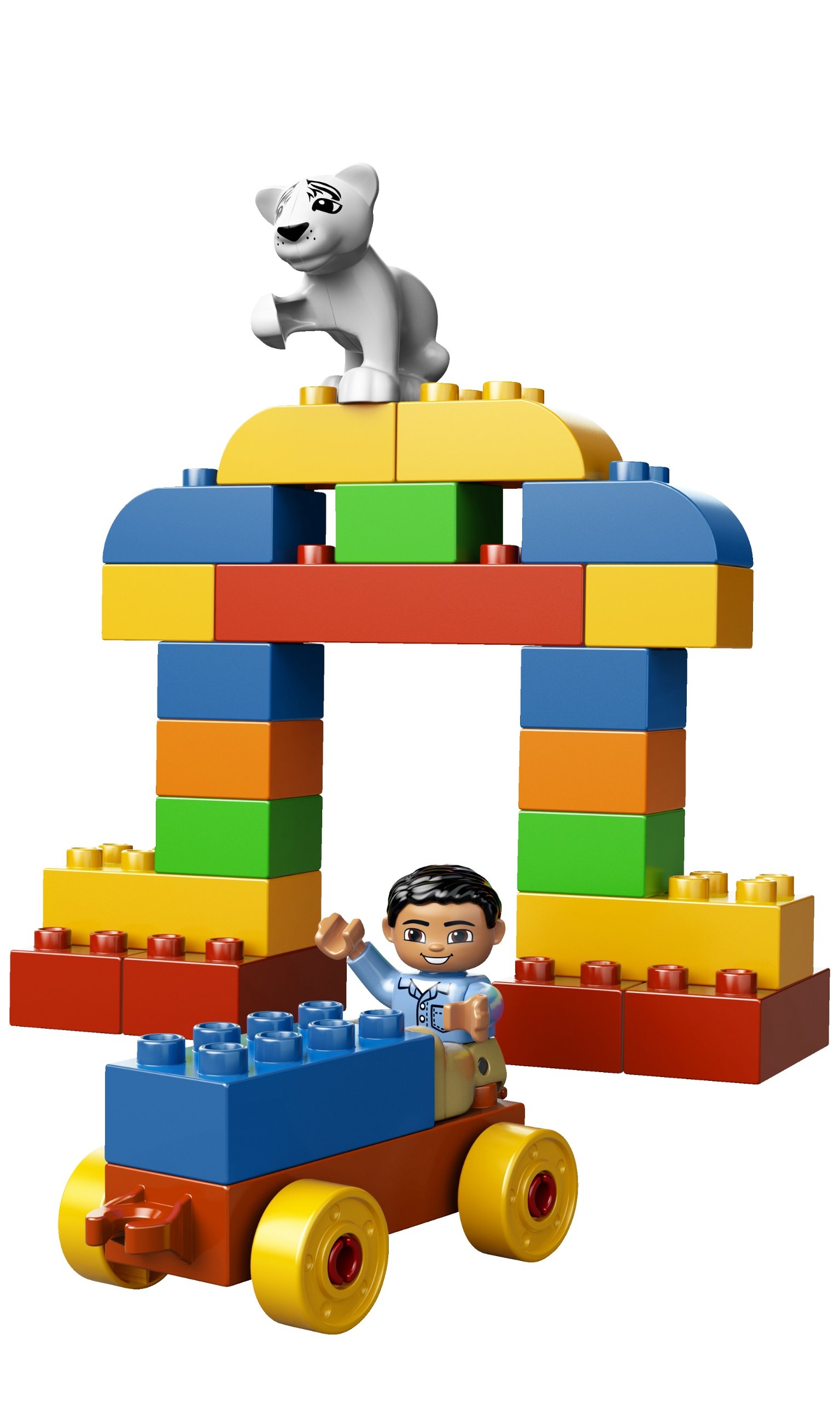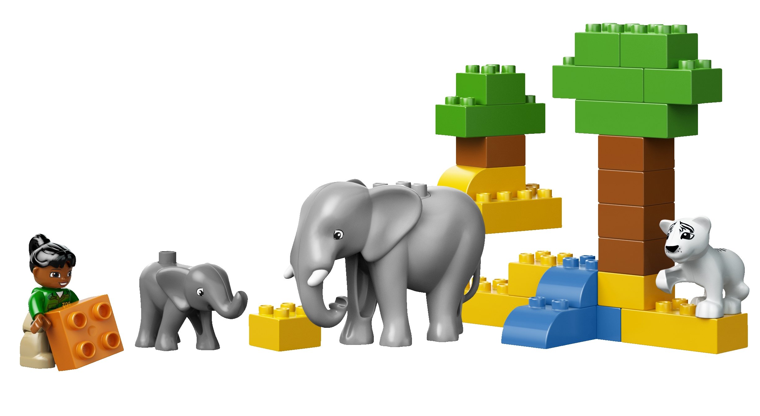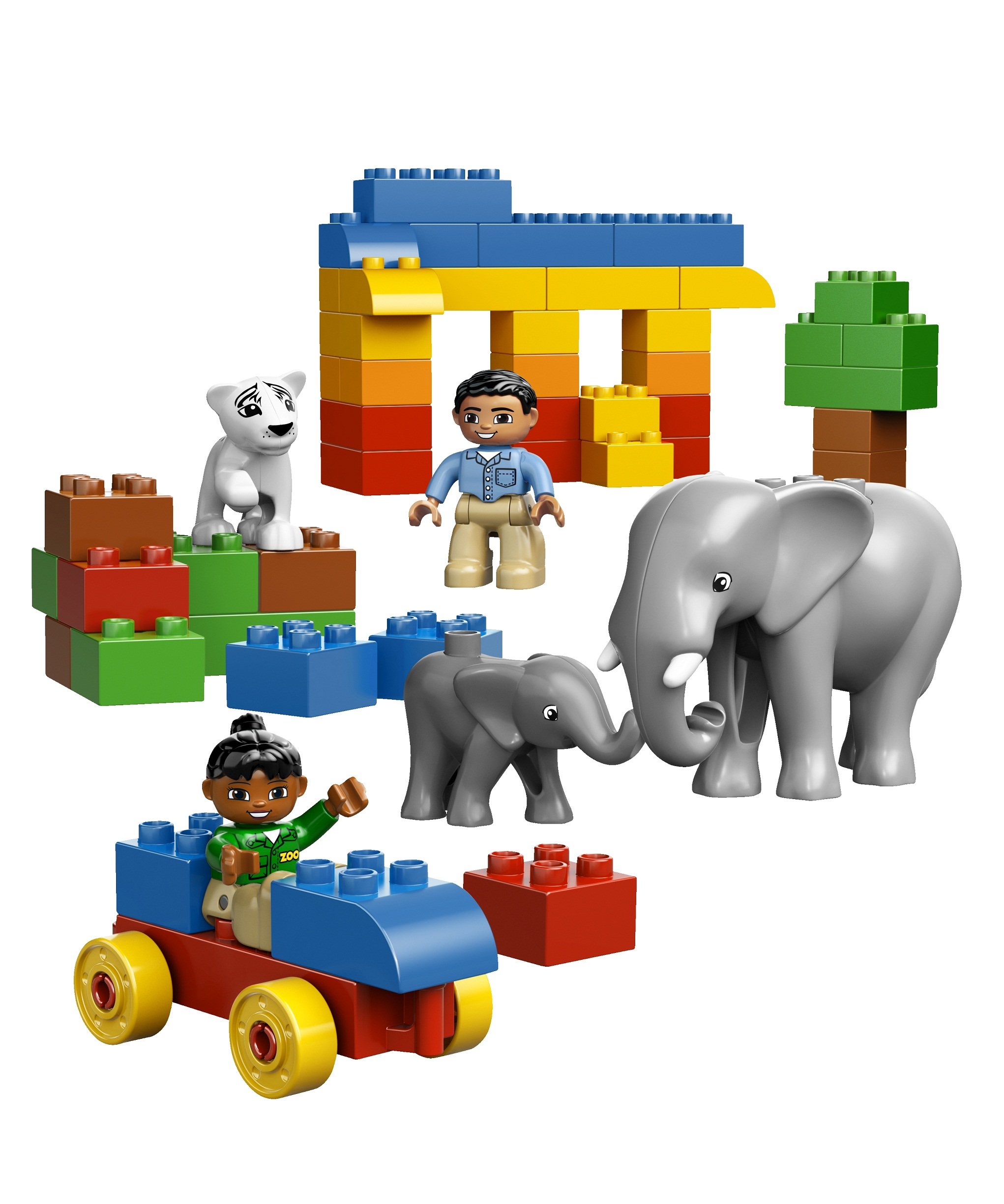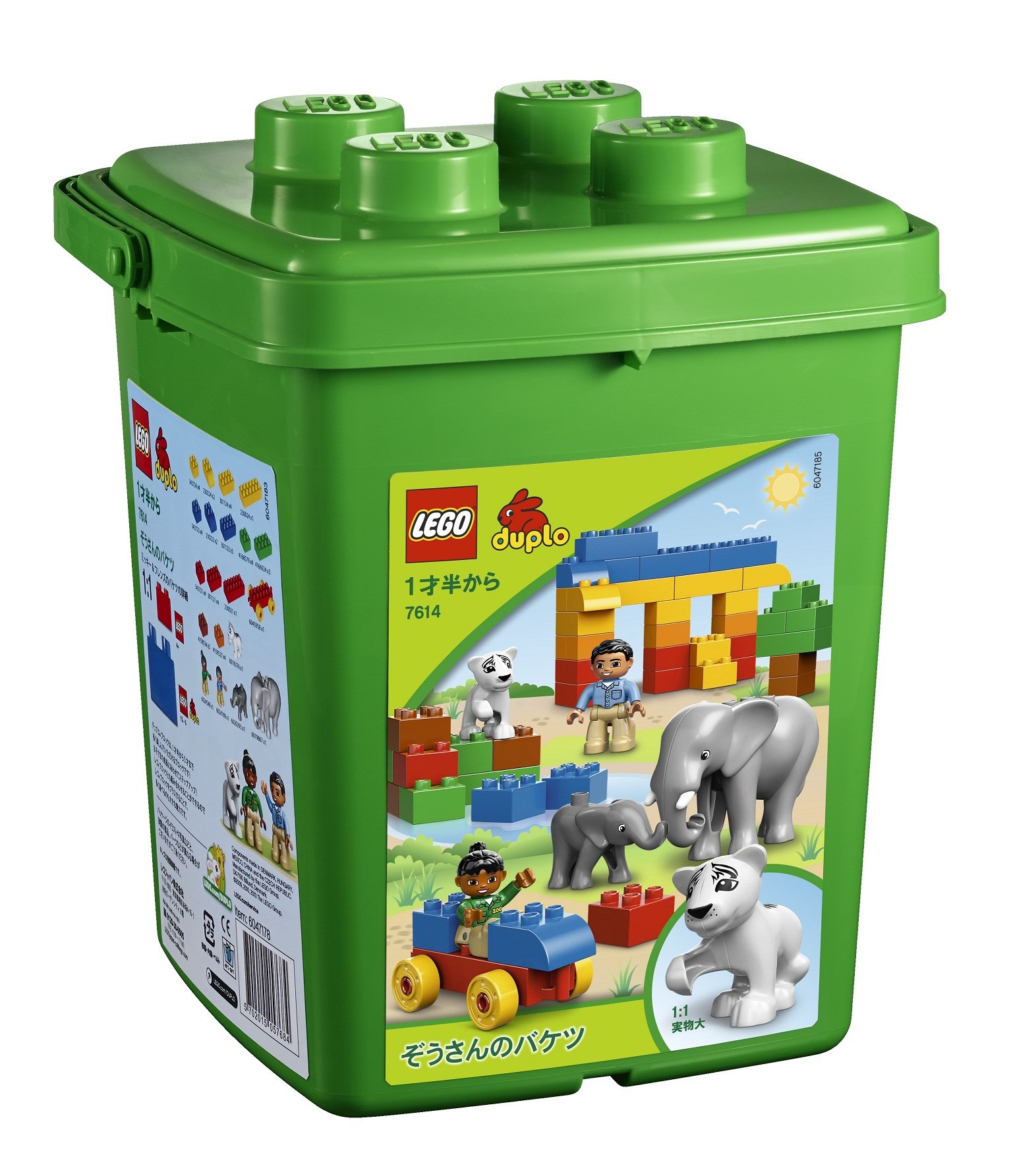 It is a set of many Du pro base blocks, dolls, mothers and children's elephants, children of lions, etc. After playing it is a bucket that can be cleaned up fun.