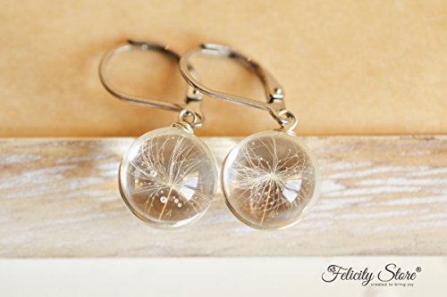 The natural properties of real dandelion seeds provides a one-of-a-kind look to each piece of these fashion earrings. Perfect for a subtle statement. The image may show a slight difference to the actual seed in color and composition.