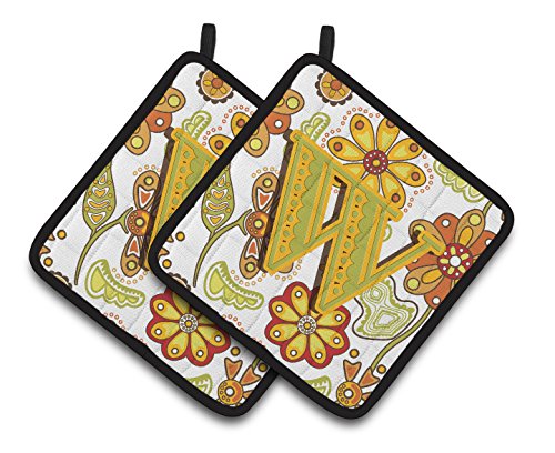 Caroline's Treasures Letter W Floral Mustard & green Pair of Pot Holders CJ2003-WPTHD, 7.5HX7.5W, Multicolor