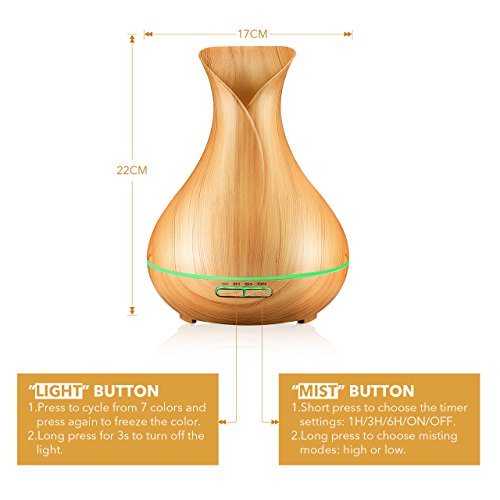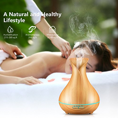 A Natural and Graceful Lifestyle. The aromatherapy essential oil diffuser features super modern wood grain looking similar to a beautiful flower-vase, which will go with any décor perfectly, like a decorative piece, ideal for office, spa, salon, Yoga studio, child's room, physical therapy studios and any room you want aromatherapy