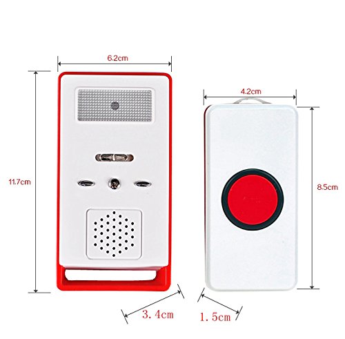 MFC ONLINE 590 Ft. Range Wireless Remote Call Button Caregiver Personal Pager Alarm Massage Therapists Beeper Nurse Call Alert (1*remote receiver+1*red call button)