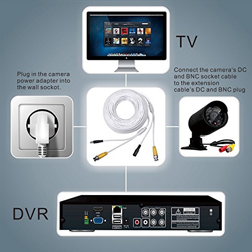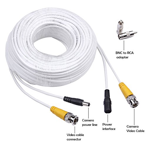Masione 4 Pack 100ft Security Camera Video Power Cable White Replacement Extension Wire Cord for CCTV DVR CCD Surveillance System with BNC to RCA Adaptor