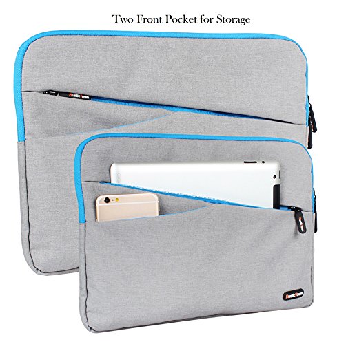 3 EXTRA POCKET FOR STORAGE Extra pocket in front and back with enough space to keeping document, charger, cellphone, memory cards, hard drive, pens etc. Heavy duty zipper on the sleeve glides smoothly and allows convenient access to your laptop.