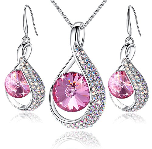 UNIQUE DESIGN WITH SWAROVSKI CRYSTAL - At Leafael, our collections are made with finest quality and authentic crystals from Swarovski. These glittering crystals shimmer with the slightest movement and sparkle even in the lowest light settings. This dazzling red jewelry set features a unique design with a large rivoli round stone at center, wrapped by a solid twisted silver-tone border adorned by small cyrstal AB Swarovski zirconia , creating a color intrigue teardrop shape.