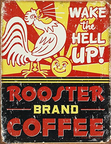 Rooster Brand Coffee Distressed Tin Sign 13 x 16in