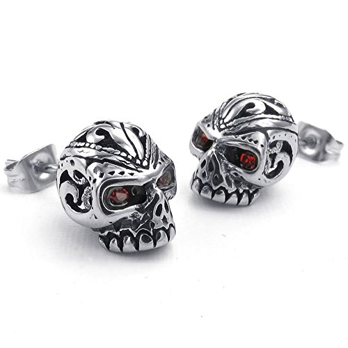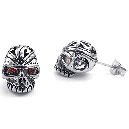 -. Title : KONOV Mens Cubic Zirconia Stainless Steel Gothic Skull Stud Earrings, Red Silver