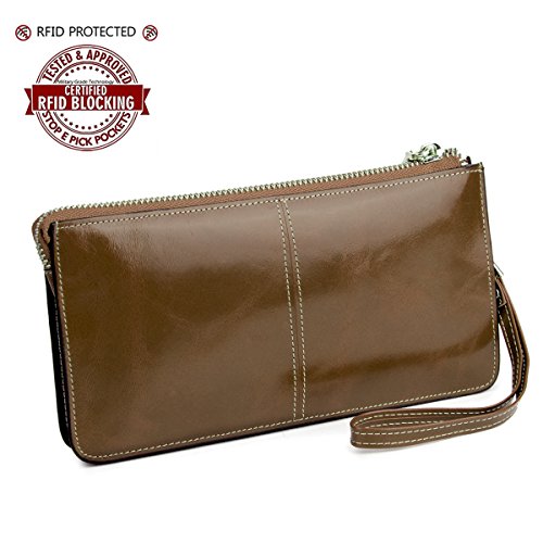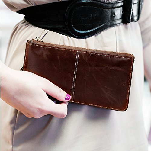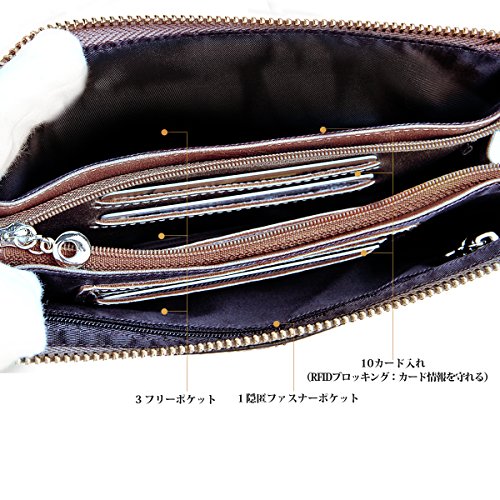 -. Title : Lecxci レディース  長財布  本革 オイルワックスレザー 色艶が増して耐久性 取り出しやすい 小銭入れ  カード10枚収納  RFIDブロッキング スキミング防止 クラッチバッグ