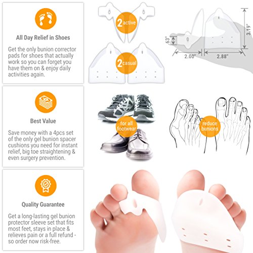 Best Value - Save money with a 4pcs set of the only gel bunion spacer cushions you need for instant relief, big toe straightening & even surgery prevention.