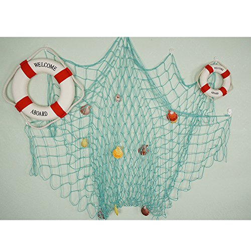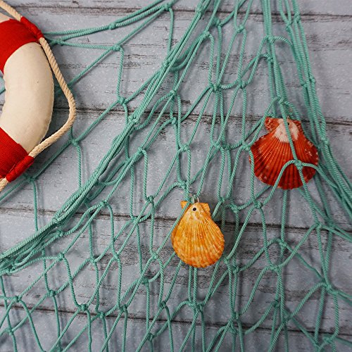 -. Feature : Material: Polyester + Cotton / Size: approx. 78.6"*39.3" (200*100cm) / Color: Aqua / The fishing net is decorated with some beautiful color shells and it is great decoration for home, bar, coffee shop, beach restaurant or parties, etc. / The net cannot be used for fishing, just for decoration.